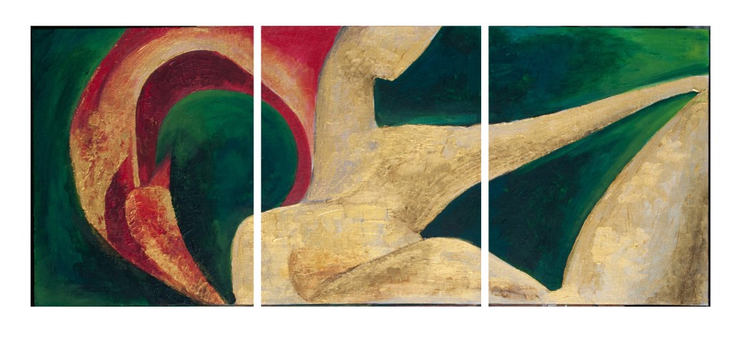 IL RIPOSO DEL GUERRIERO Trittico, acrilico su cartone telato 24x30cm x3pannelli 2025 non disponibile