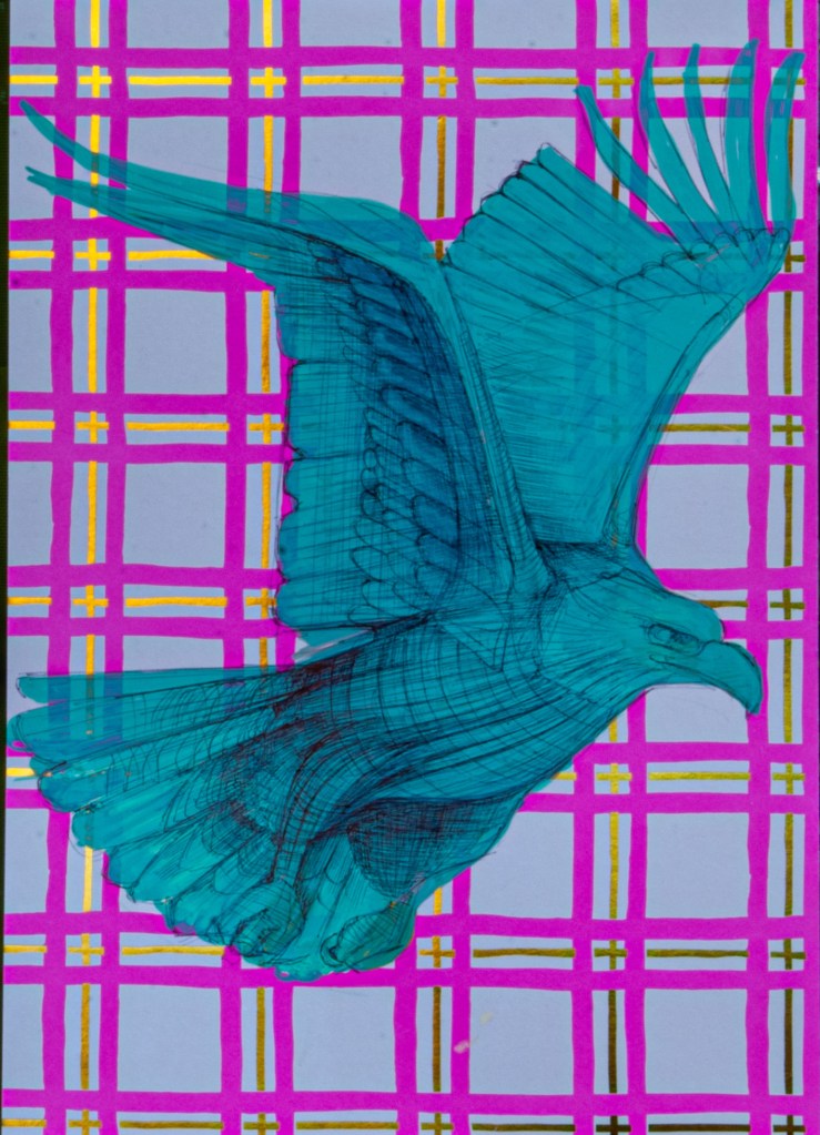 - aquila 23x28cm acrilico e penna a sfera su cartone stampato