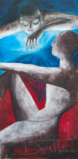 L’arte surrealista è un viaggio attraverso l’immaginazione senza confini, dove le leggi della fisica e della logica cedono il passo a una realtà alternativa. “Incontro” è un esempio emblematico di questa corrente artistica, che invita a esplorare la comunicazione delle anime in uno spazio atemporale. In questo quadro, la geometria diventa un elemento dinamico, quasi un personaggio che partecipa attivamente alla narrazione visiva. Le ombre e le figure enigmatiche si fondono in un dialogo silenzioso, suggerendo una connessione profonda che va oltre il visibile. È un’arte che sfida la percezione e incita a una riflessione sull’esistenza in termini non convenzionali, spingendo l’osservatore a interrogarsi sulla propria realtà interiore e sulle infinite possibilità dell’universo creativo.